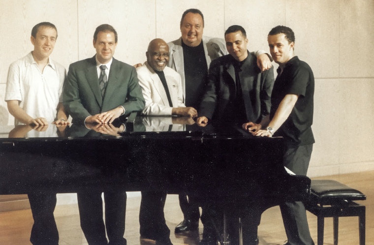 Piano Summit, Jazz Open Stuttgart. v.l: Geoffry Keezer, Bill Charlap, Junior Mance, Alex Wilson, Jacky Terrasson, 2002